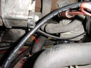 ACHTUNG: Vor allem bei warmem Motor! Hier tritt mit 99,9%iger Wahrscheinlichkeit Kühlwasser aus, Verbrühungsgefahr!