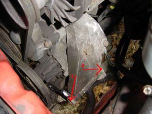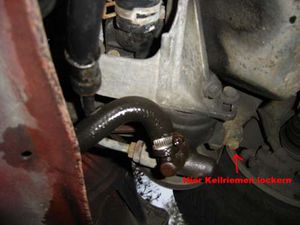Nun kann man den Keilriemen auf welcher die Servopumpe sitzt lockern. Für den ersten Schritt muss man folgenden Schrauben lockern: