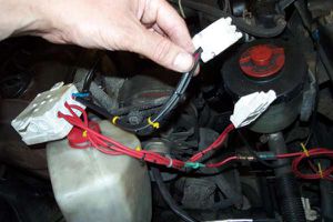 Zuerst habe ich die Zuleitung zum Scheinwerfer durchtrennt und ein Buchsenteil (Zuleitung) und ein Steckerteil (Lampe H4 Stecker) als Verbindung eingebaut, so kann man den "Booster" ohne Probleme entfernen und den alten Zustand durch einfaches umstecken wiederherstellen.