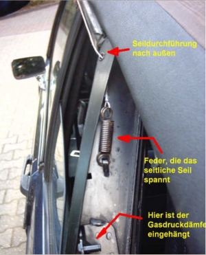 die Innenseite des Verdeckgestells geführt wird. Dort ist es über eine Feder ebenfalls