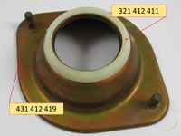 Den weißen Anschlagring bekommt man zwar nicht mehr bei VW, dafür bei Audi, gleiche TN. Diese Lager gabs auch im Audi 80 B1. Skoda hatte wesentlich später noch eine ähnliche Version, dort hieß das Teil 6U0 412 367 Stützring.