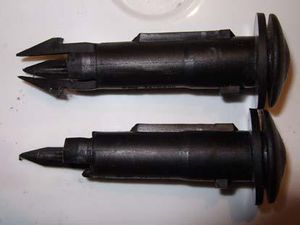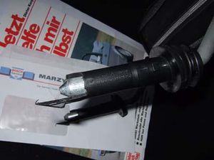 Jetzt wieder zu unseren kaputten Führungshülsen Nr. 171 881 939 A 01C. Die obere (Bild rechts) musste ich herausdrücken, der unteren fehlten schon 3 Krallen, die konnte ich schon mit der Kopfstütze herausziehen.