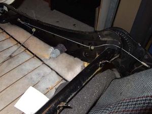 Jetzt kann man – bei Bedarf – auch die Entriegelungszüge ersetzen oder nachspannen (umhängen, falls sie zu lang sind). Die abgewinkelten Enden sind lediglich in Bohrungen gesteckt.