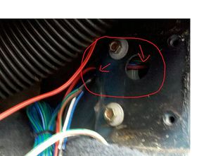 Angefangen habe ich mit der Demontage des Knieschutzes. Anders kann man die Leitungen nicht ordentlich verlegen. Außerdem hat man so besseren Zugriff auf die Zusatzkontakte an der Zentralelektrik. Danach fing ich an mit dem Verlegen von Kabeln und montieren der Motoren. Die Kabel für die Motoren habe ich so in die Türen gezogen damit ich später keine Probleme mit dem Knieschutz bekomme:
