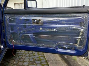 Zuletzt habe ich noch eine neue Türfolie mittels doppelseitigem Klebeband und einer stabilen Folie montiert.