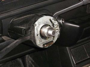Nun werden die drei Stehbolzen mit einem flachen Schraubendreher herausgeschraubt, danach die Kulisse heruntergezogen (Vorsicht mit dem Kabel der MFA – das ist mit einem zwei- oder vierfachem Verbindungsstecker am Innenkabelbaum angesteckt)