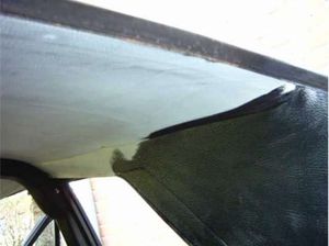 Mein Himmel war nicht eingerissen sondern nur stark verschmutzt. Daher habe ich den Himmel mit „ATG Power Color“ gefärbt. Nachdem ich „Viss“, „Quick nBrite“ „Domestos“, etwa sechs andere Mittelchen, sowie Kaltreiniger, Waschbenzin und Spiritus benutzt hatte und den Himmel 3 Stunden geschrubbt hatte sah er immer noch schmutzig uns scheckig. aus.