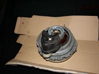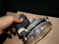 Man baut an dem originalen Scheinwerfer den Metallrahmen ab inklusive Motor und das eine kleine weiße Teil ich nenne es mal Gelenk