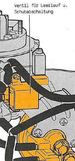 Fahrzeuge mit Klimaanlage und/oder automatischer Schaltung: Im kalten Zustand wird bei Fahrzeugen mit 1.6 Liter Hubraum mittels Temperaturschalter in der Startautomatik Unterdruck auf die Frühdose am Verteiler geschaltet und durch ein Rückschlagventil gehalten. Dadurch wird die Zündung etwa 15° Richtung "früh" verstellt. Was für einen runderen Leerlauf sorgt.