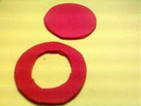 Ich habe die Lüftung mit der Rundung auf Moosgummi (2mm stark aus einem Bastelgeschäft) gelegt, abgezeichnet und ausgeschnitten. Pro Lüftung benötigt man das 2 mal. Beide Moosgummi-platten werden dann zusammengeklebt, danach die Mitte ausgeschnitten, so daß wie auf dem Foto zu sehen ist ca. 1,2cm verbleiben.