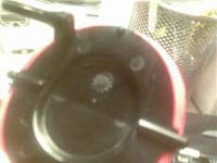 Erst muss man den Hebel zum Rädchen aushängen, dann oben etwas drücken damit die runde Öffnung ein wenig oval wird und danach die Klappe vorsichtig aus den Haltepunkten drücken. Jetzt muss man die alte Dichtung entfernen. Ich hatte das Glück, daß auf einer Seite noch etwas Dichtung vorhanden war und somit eine fast vollständige Vorlage. Aber auch ohne geht es.