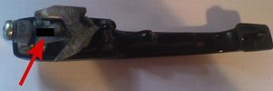 Hatte man mit Varianten 1 und 2 keinen Erfolg, so geht's dem Türgriff an die Wäsche. Dieser muss abgeschraubt werden, was recht einfach machbar ist. Allerdings muss hierzu die Tür geöffnet werden. Eine theoretisch recht problematische Aufgabe, wenn das Auto vor dem Schlüsselverlust abgeschlossen wurde. Bei einem Golf I Cabrio dürfte jedoch auch dies kein Problem sein. Der Türgriff ist mit zwei Schrauben an der Tür befestigt. Eine Schraube befindet sich an der Türinnenseite in der Nähe des Tügriffs hinter dem Türgummi. Die andere Schraube liegt direkt am Türgriff; versteck unter der länglichen Abdeckung, die sich entlang des Griffs erspannt. Diese Abdeckung kann beispielsweise mit einem kleinen Schraubenzieher und einer Prise Vorsicht/Geduld entfernt werden. Wenn beide Schrauben geöffnet sind, dann habt ihr den Griff praktisch schon in der Hand. Das folgende Bild zeigt die genaue Stelle, an der bei meinem Auto der Schlüssel-Code stand: