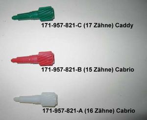 Bei VW gibt es für das Cabrio zwei unterschiedliche Ritzel (rot und beige) und für den Caddy gibt es noch zusätzlich ein grünes Ritzel. Teilenummer & Verzahnung