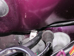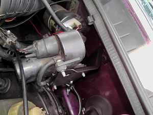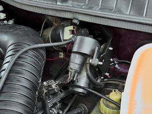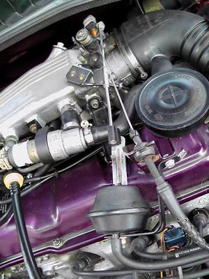 Das Stellelement besteht aus einem Gummiballon mit Verstellhebel und kommt an den Ventildeckel. Der Verstellhebel wird in die Drosselklappe eingehakt. Dazu ist an den 2H-Drosselklappen bereits eine Öse mit einer kleinen Gummitülle vorhanden - nur leider ist diese Gummitülle in der Regel nach fast 20 Jahren sowas von bröselig daß sie einem schon entgegen fällt sobald man sie nur anschaut. Eine Teilenummer hat das Teilchen wohl auch nicht, sodaß man die Verstellstange entweder ohne Gummitülle einhakt oder sich selbst was baut. Ich hab die Gummtülle erstmal weg gelassen was prima funktioniert, werde aber die Tage noch einen Karosseriedübel bekommen der da genau rein passt.