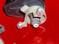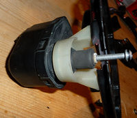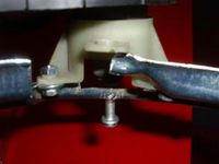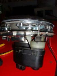 Jetzt baut ihr Euren Scheinwerfer wieder zusammen und ermittelt die 2 Löcher für die Befestigung der 2 Leuchtweitenregulierungsarme (der beiden äußeren). Die bohrt Ihr natürlich mit dem 4er Bohrer. Schaut dass die Leuchtweitenregulierung sauber und grade auf der Halterplatte sitzt damit sie später Ihre Dienste "sauber" verrichten kann & Ihr werdet bemerken, dass ein Loch sehr knapp am Trägerende sein wird, hier benutzt Ihr die "große" Unterlegscheibe und es hält bomben fest.