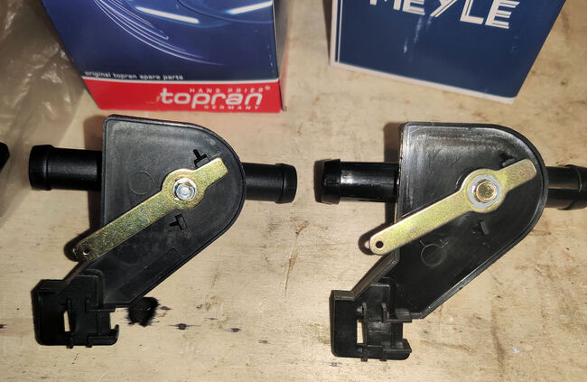 Das Heizungsregelventil im Golf 1 (auch verbaut bei vielen anderen alten VW und Audi) ist eigentlich ein gut verfügbares Ersatzteil, das es auch noch neu von mehreren Zubehörherstellern gibt. Leider wird es oft schon nach kurzer Zeit undicht, die Folge: Kühlwasser tritt im Bereich des Verstellhebels aus. Oft sammeln sich langsam aber stetig Kühlwassertropfen auf und unter dem Heizungsregelventilgehäuse. Häufig bleibt das auch unbemerkt da die Tröpfchen bei warmem Motor wieder trocknen/verdampfen, der Kühlwasserstand sinkt dadurch jedoch langsam aber stetig.