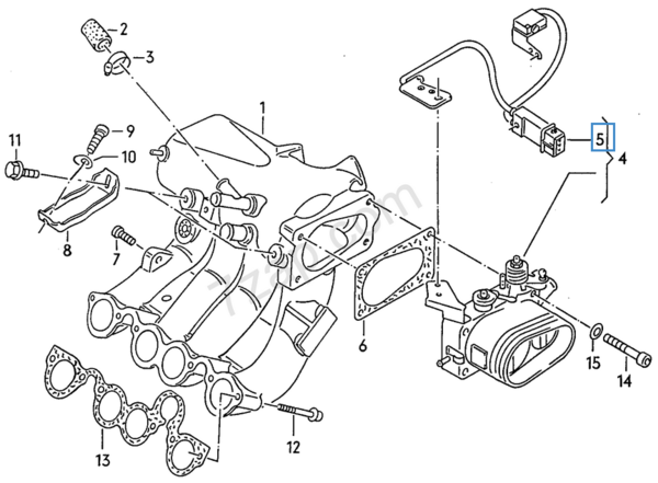 Im untenstehenden Bild ist die Drosselklappe mit den beiden Schaltern zu sehen (Nummer 5).