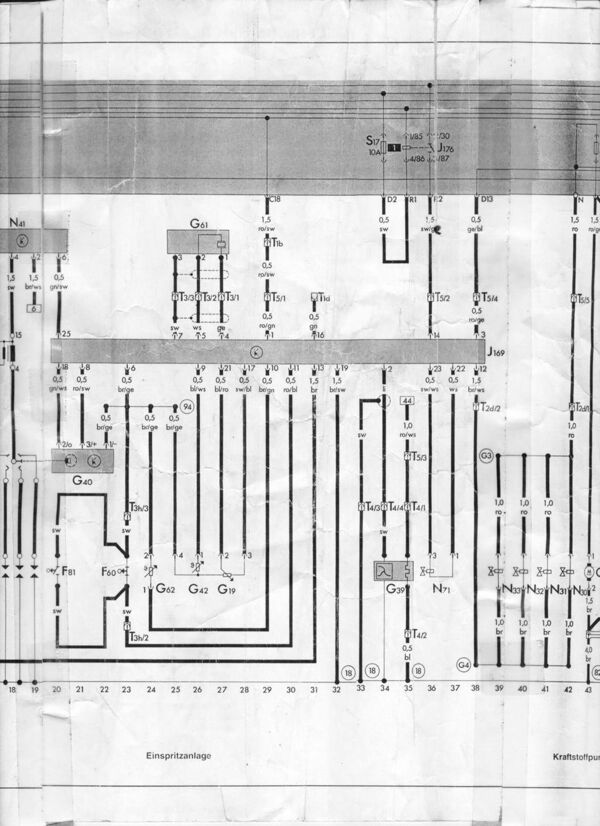 Die beiden Schalter sind parallel geschalten und melden entweder Leerlauf oder Vollgas an das Motorsteuergerät. Dazu werden die beiden Schalter F60 (Leerlaufschalter) und F81 (Volllastschalter) von der Digifant mit etwa 5V Spannung versorgt. Die 5V kann man am abgezogenen Stecker an den Kontakten T3h/2 und T3h/3 bei eingeschaltener Zündung messen. Siehe Stromlaufplan Pfad 23.