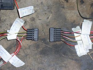 • Einteiliger G60-Kabelbaum: Dieser beinhaltet alle stecker für den Motorraum und geht ohne Verbindungsstecker direkt bis in den Innen raum an die Zentralelektrik. Dies Variante ist am aufwändigsten anzupassen und wird hier nicht näher beschrieben. Hat man einen solchen Kabelbaum erwischt, dann empfiehlt es sich eher diesen wieder zu verkaufen und einen der beiden nachstehenden zu erwerben.