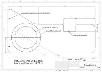 Die Boards müssen dann entsprechend zugesägt werden. Das Lautsprecherloch sollte entsprechend der gewählten Lautsprecher vorgesehen werden (Einbaumaße werden meistens mitgeliefert). Bei meinen Blaupunkts war die Einbauöffnung 93mm groß. Je nach Einbautiefe sollte die Position der Lautsprecher wählen, wobei im vorderen Bereich normalerweise ausreichend Platz ist.