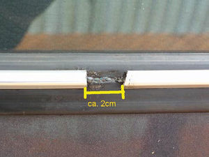 Ein kurzes Stück in die Dichtung einschieben (oben oder unten in der Mitte der Scheibe, ist „Wurscht“)...
